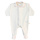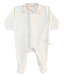 Het Portugese Baby Gi staat bekend om zijn mooie details en prachtige prints. Hier is deze ivoor velours pyjama afgewerkt met een zacht rose print in toile du joie aan het kraagje en de voetjes.