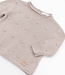 De trui met open rug in biologische bamboe is zacht, delicaat en perfect als eerste outfit.