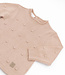 De trui met open rug in biologische bamboe is zacht, delicaat en perfect als eerste outfit.