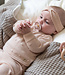 De trui met open rug in biologische bamboe is zacht, delicaat en perfect als eerste outfit. Lees meer..
