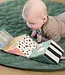 Zintuiglijke elementen zoals een rammelaar, een bel, kreukels en veel verschillende texturen stimuleren het gehoor- en tastzintuig van je baby.
