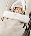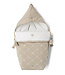 Angels Nest voor de autostoel, een exclusieve FIRST®SIGNATURE jacquardstof in beige gebreide katoen, gevoerd met witte gewafelde jersey.