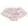 Bloomer met bloemenprint. De bloomer bestaat uit drie lagen en heeft een 2 kleine strikken vooraan die afgewerkt zijn met wit-roze bloemen. In de taille zit er een rekker. Tot en met 2 jaar is er een pamperbroekje voorzien in dezelfde bloemenprint.