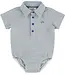 Licht blauwe Melange polo in bodyvorm met jeans blauwe knopen en een zelfde kleur geborduurd logo.