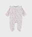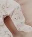 Deze slaapromper is zorgvuldig vervaardigd uit een ribfluweel, een verfijnde bloemenprint, een elegante écru paspel en een gepersonaliseerde drukknoop met het bloemenmotief. Het extraatje: ruches ter hoogte van de schouders.