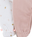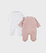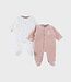 Dit duo van zachte fluwelen pyjama’s is ideaal voor comfortabele en knusse nachten. De eerste, in wit, is versierd met een natuurprint met roze accenten. De tweede, in oudroze, valt op door een mooie konijnenborduurwerk op de borst. Twee stuks die even praktisch als schattig zijn om de baby dag en nacht te vergezellen.