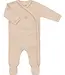 Zacht en comfortabel newborn pakje van fijne ribstof in een warme camel kleur, met geborduurde konijntjes op de borst en een schattige crochet afwerking langs de drukknoopsluiting. Een tijdloos pakje voor de allereerste momenten. Lees meer..