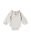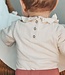 De Wavy Romance Romper is een perfecte mix van romantiek en comfort. Gemaakt van zachte, gestructureerde jersey, biedt deze romper een fijne pasvorm voor de tere huid van je kleintje. Het pure beige design is versierd met speelse ruffles aan de mouwen en in de nek, die een charmante uitstraling geven.